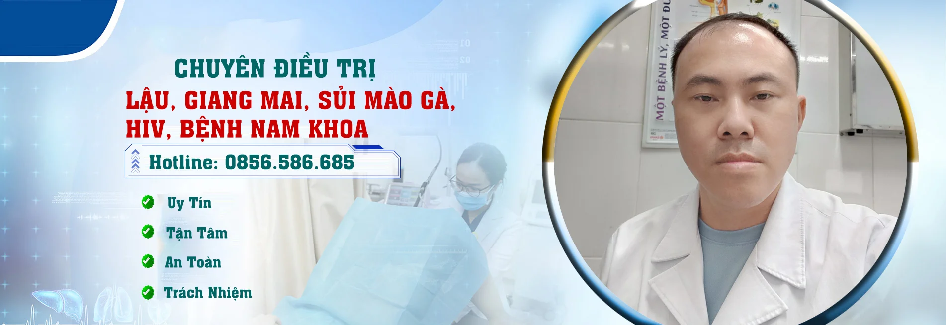 Bác sĩ: Nguyễn Trọng Hiền tốt nghiệp đại học y thái bình năm 2012,có 10 năm kinh nghiệm trong chẩn đoán điều trị bệnh xã hội bệnh nam khoa,Bệnh lây truyền qua đường tình dục : Lậu giang mai sùi mào gà…